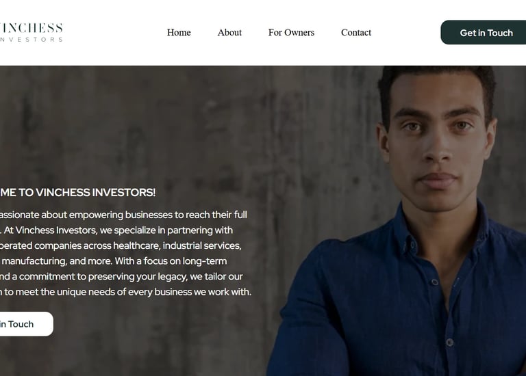 The website highlights tailored investment solutions, leadership transitions, and liquidity options for businesses in healthcare, industrial services, specialty manufacturing, and distribution.
