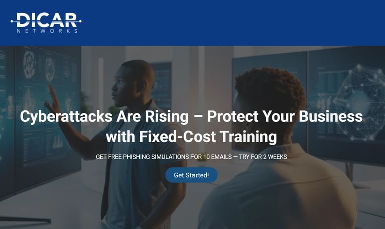 BullPhish by Dicar Networks is a cybersecurity training platform designed to help businesses strengthen their defenses against phishing attacks and cyber threats. The website offers fixed-cost training, free phishing simulations, and employee security awareness programs to turn staff into a powerful first line of defense against cybercrime
